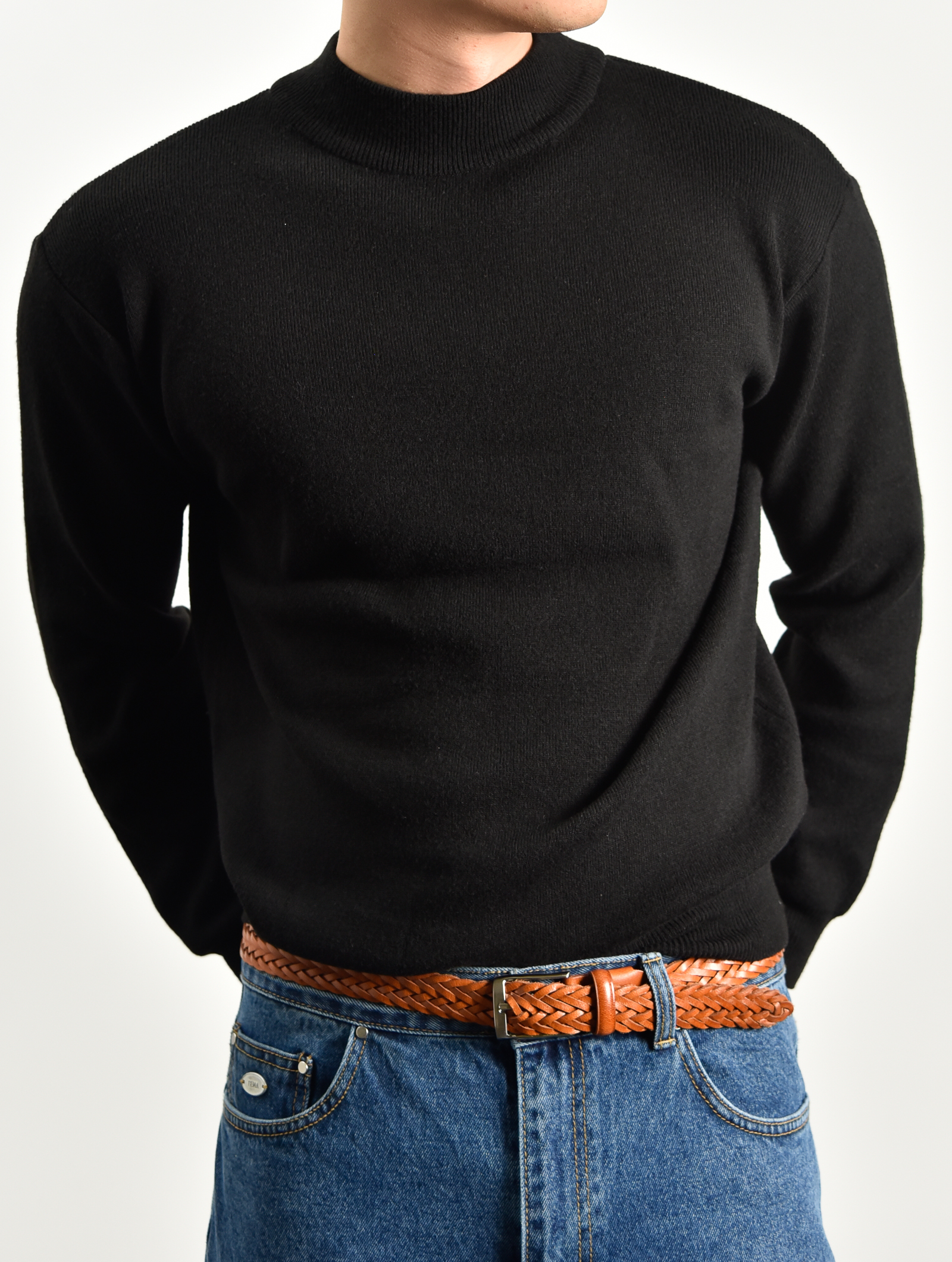 針織內搭小高領 - 黑