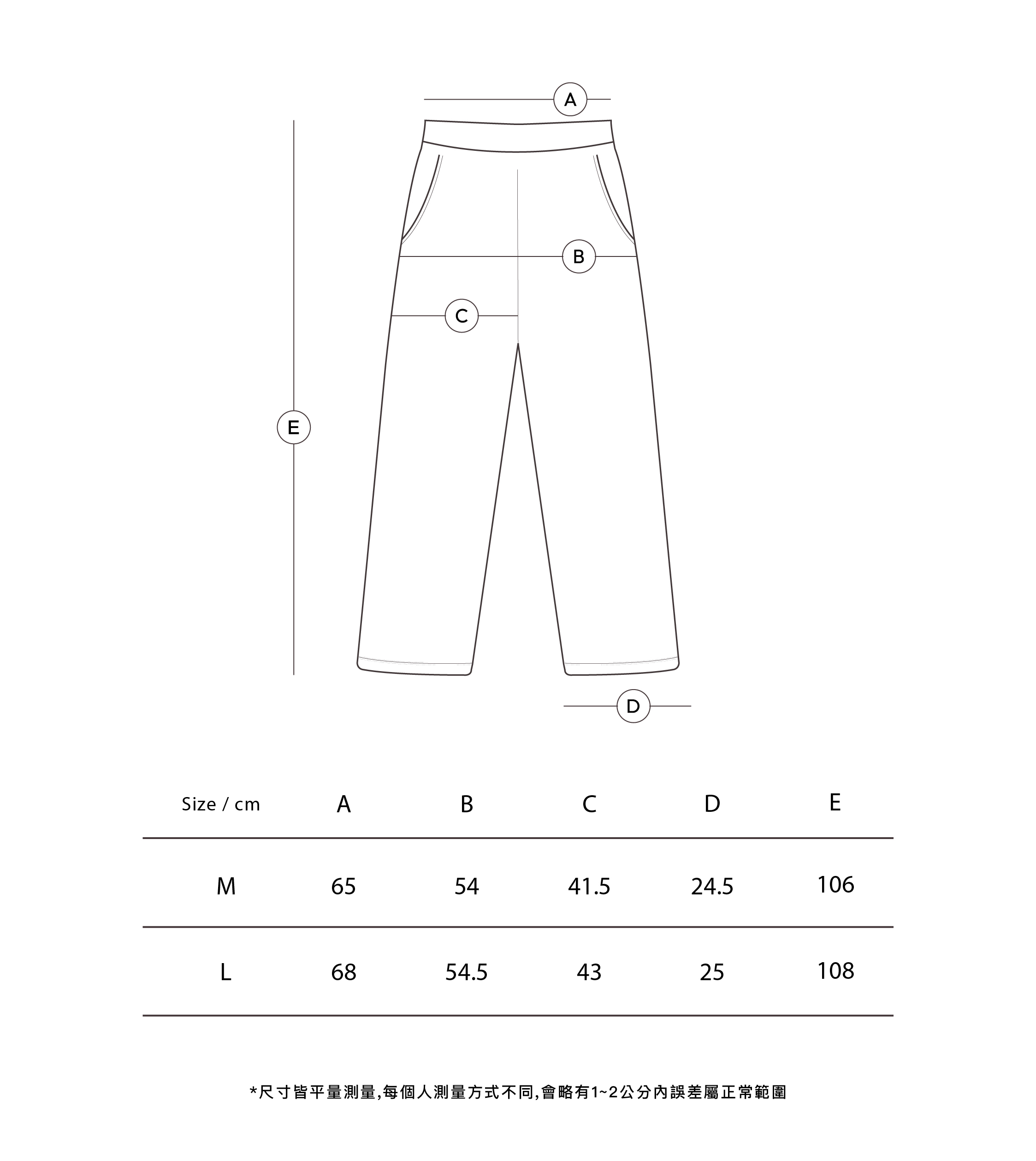 - 褲口隱藏式調節扣,增添設計感並能依需求自由變化造型