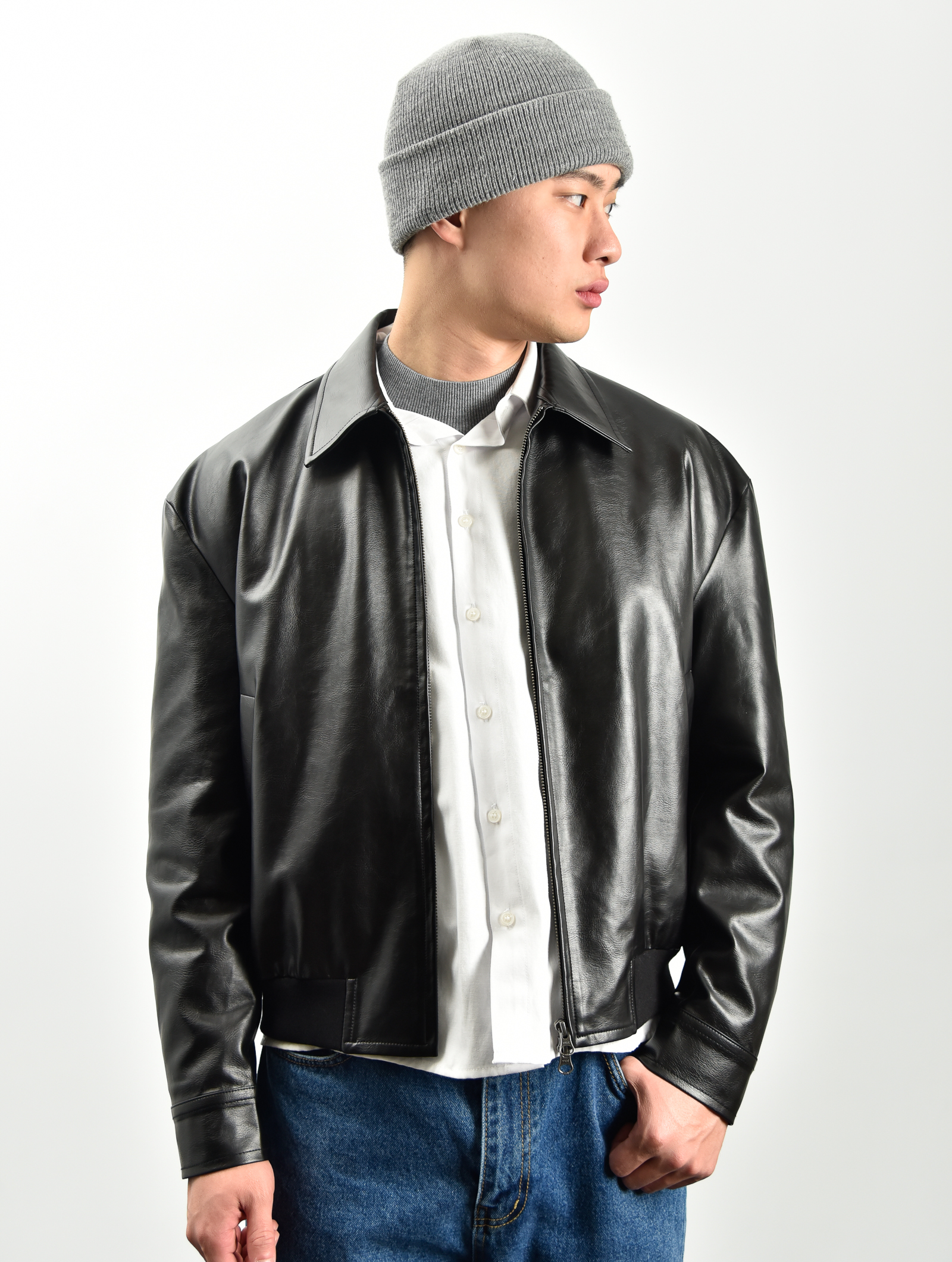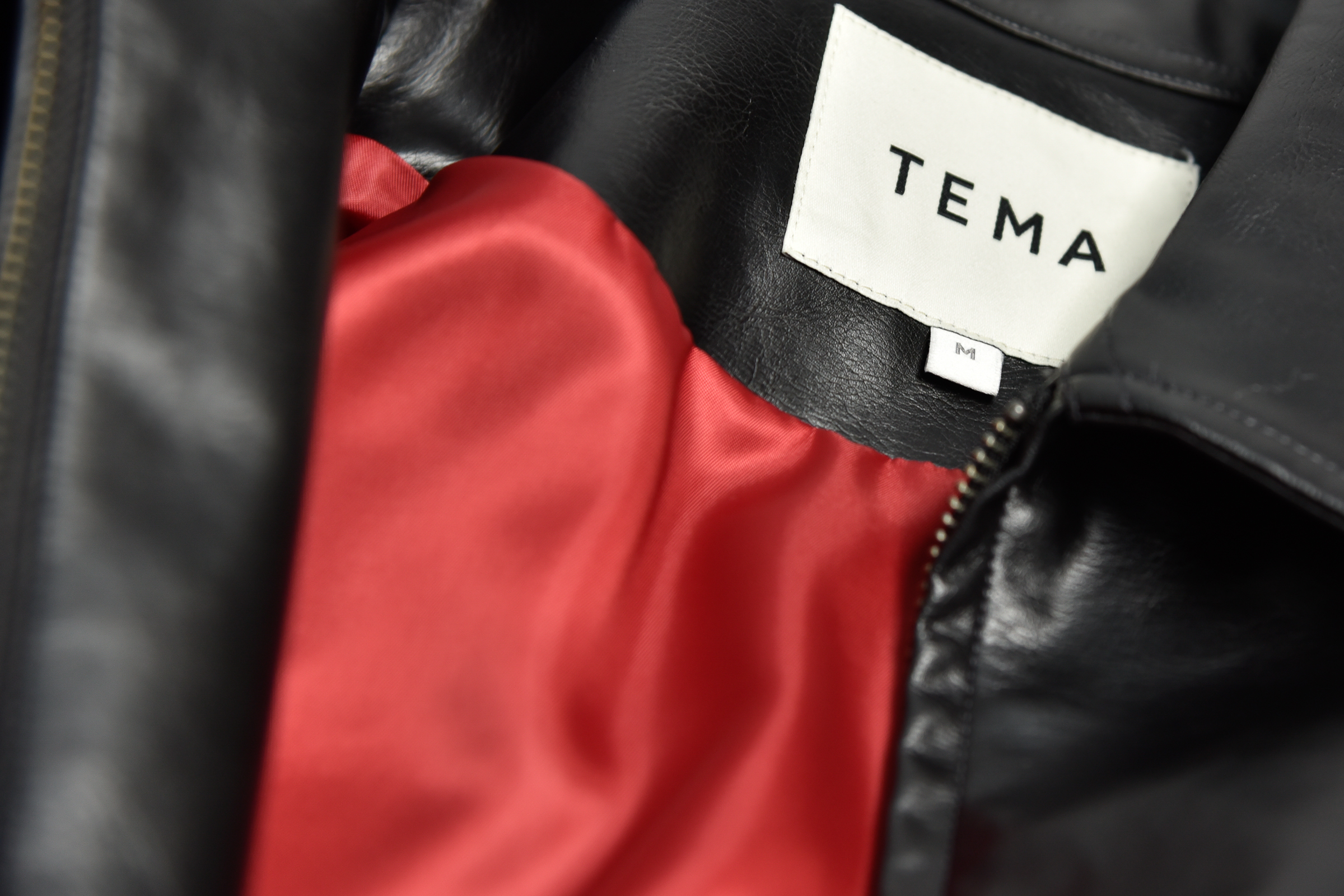 Made by TEMA | 簡約弧線皮革外套 - 黑