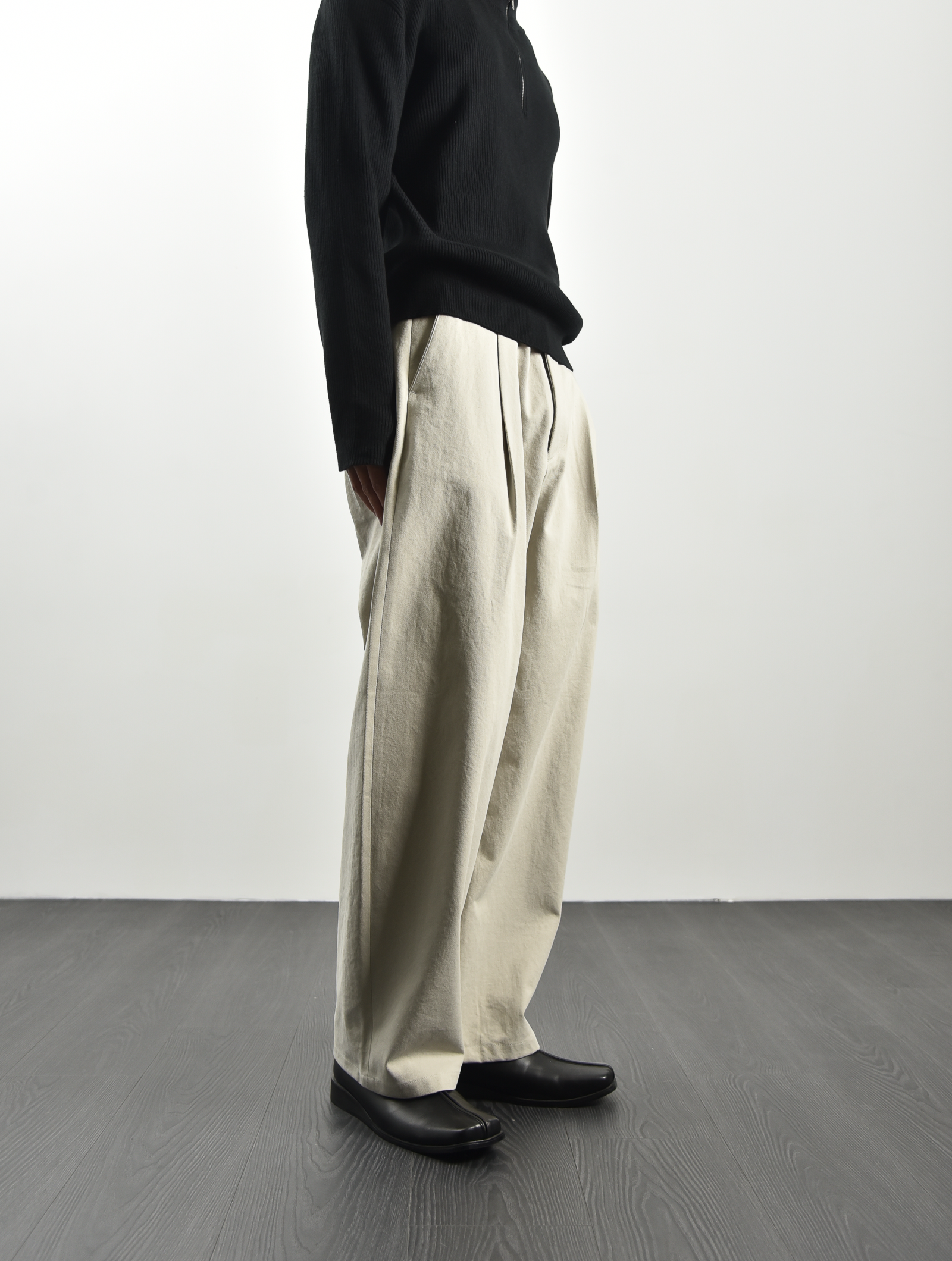 打褶休閒棉質褲 - 白灰