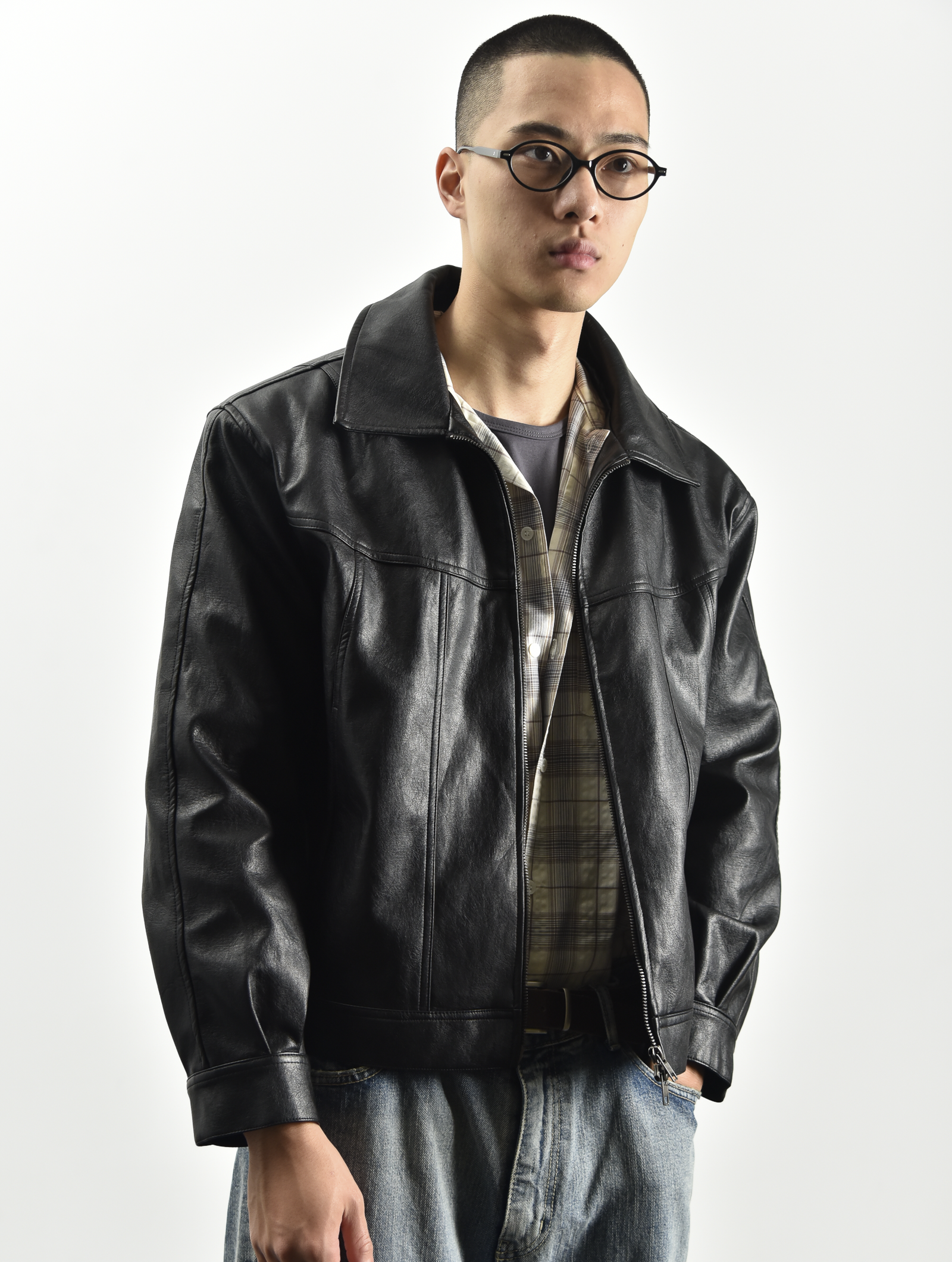 精緻城市皮革短夾克 - 黑