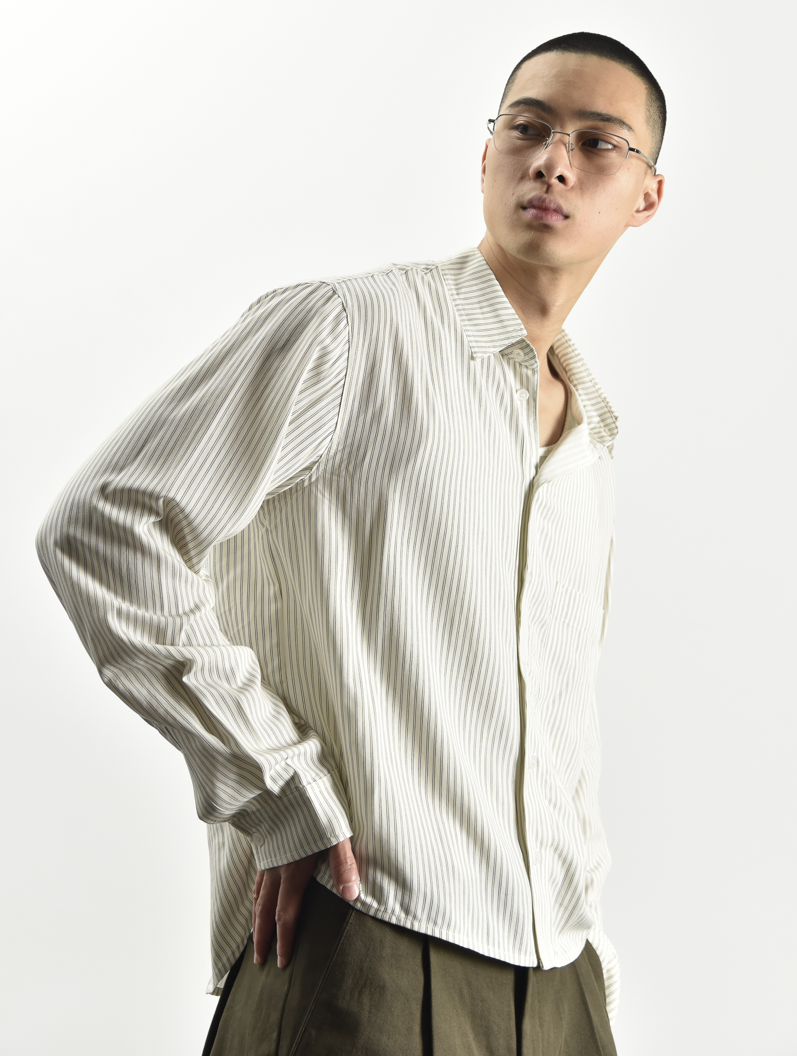 - 採用細條紋光澤面料,低調映現質感光影與層次變化