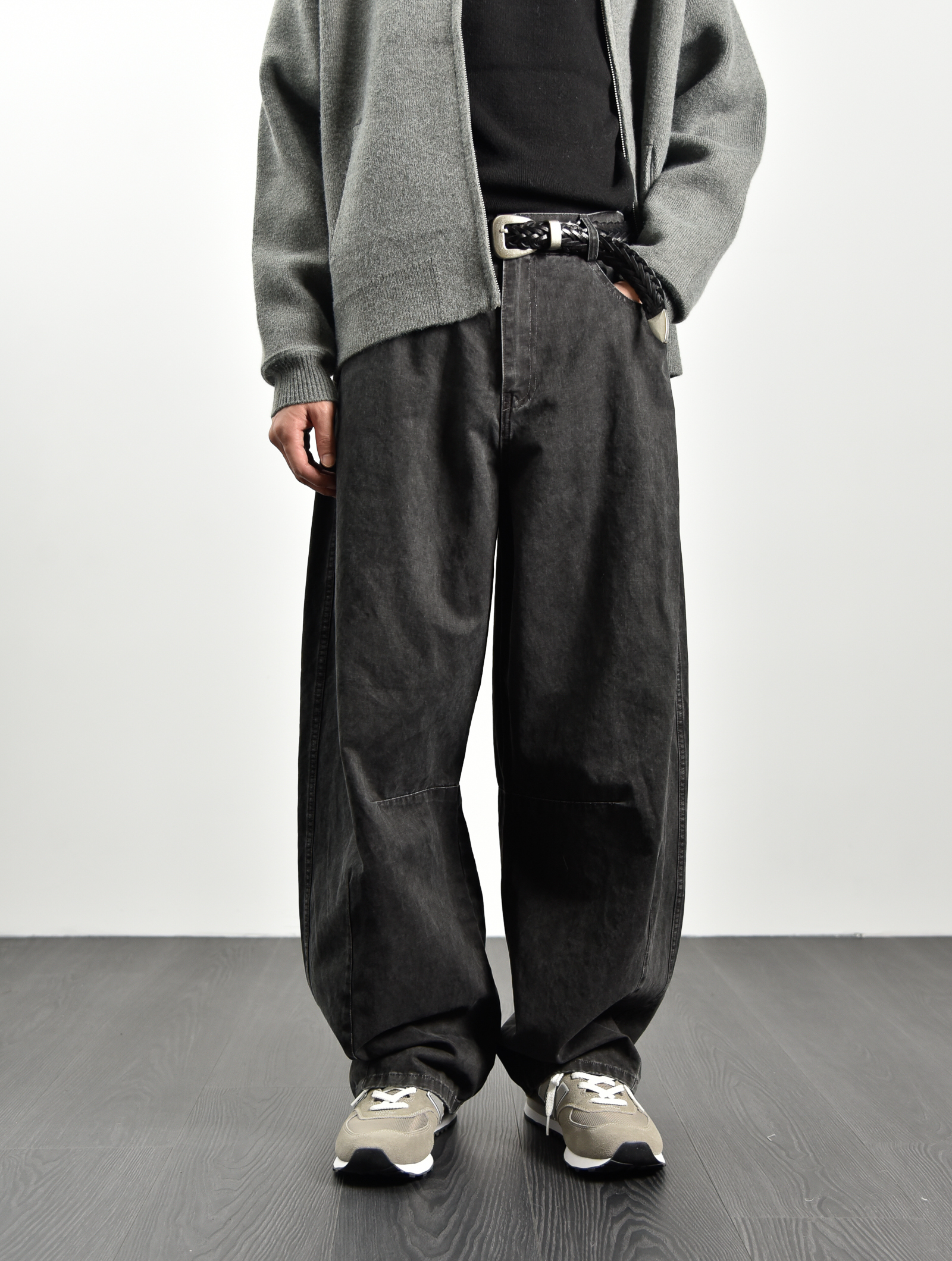 - 弧形剪裁與錐形褲管設計,修飾腿型並兼具現代感