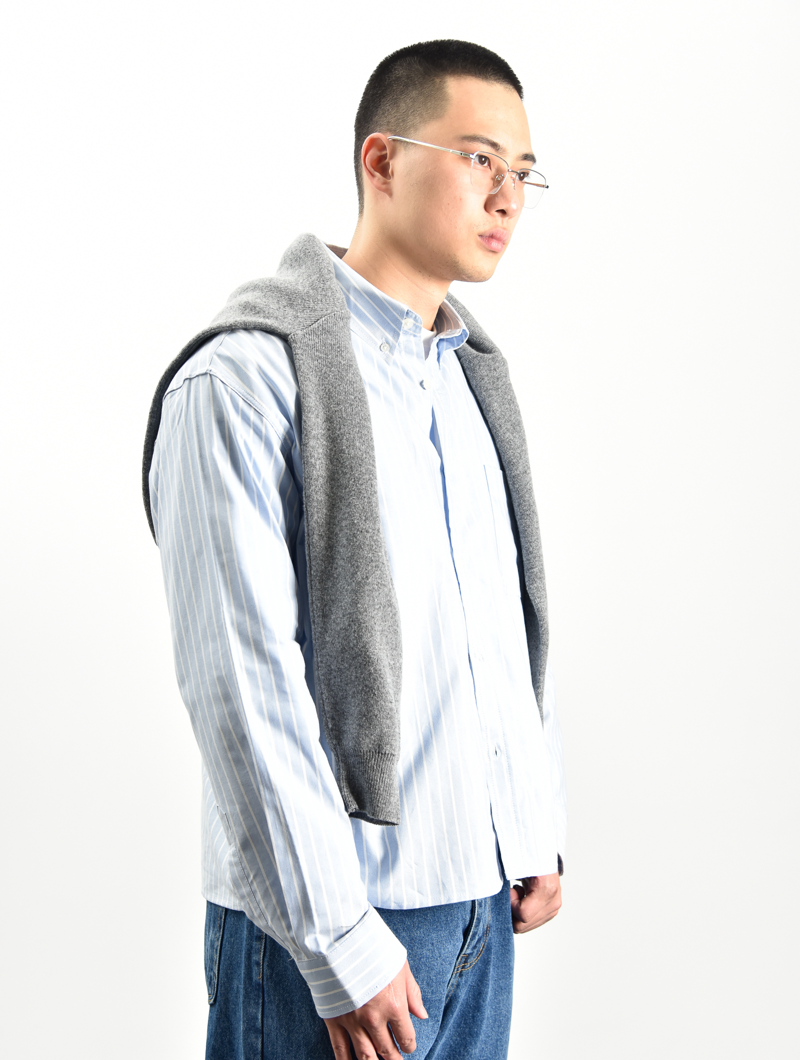 - 條紋紋理低調而俐落,勾勒出清爽俐落的上身線條