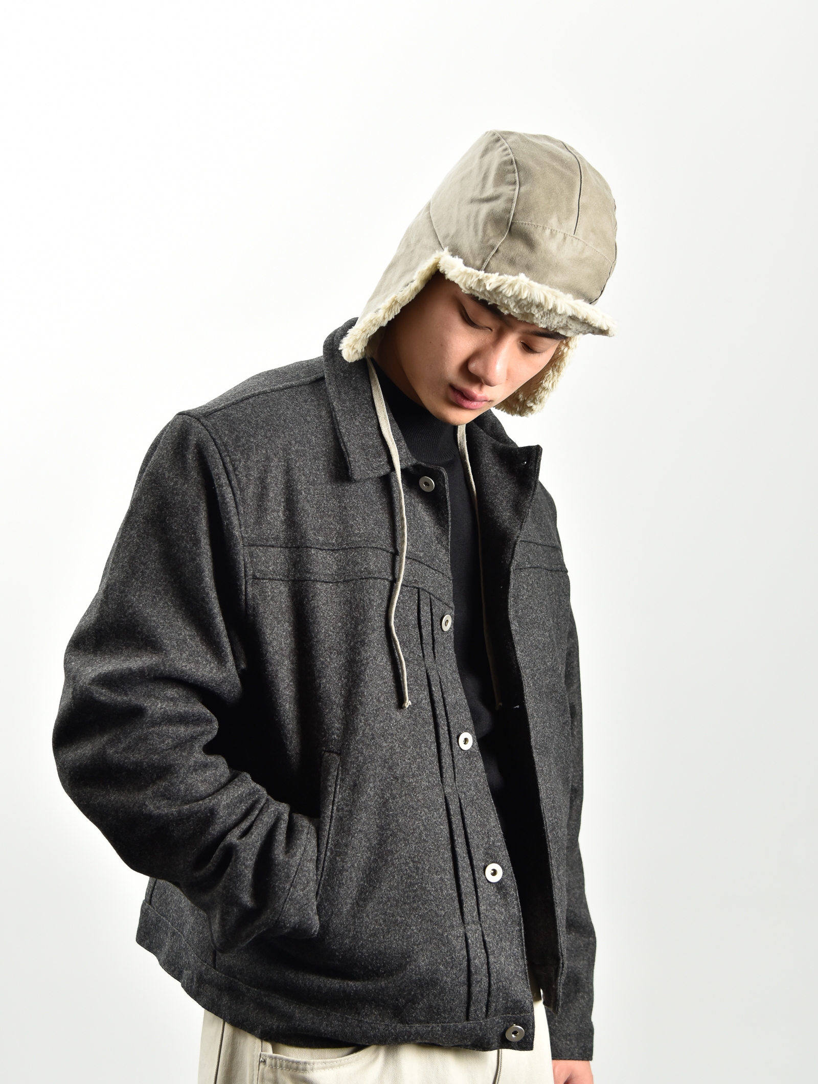 羊毛打摺卡車外套 - 深灰