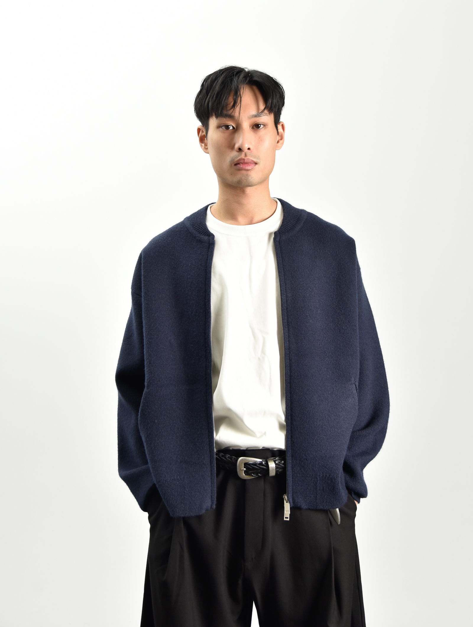 - 棒球外套經典輪廓,結合針織材質提升休閒質感